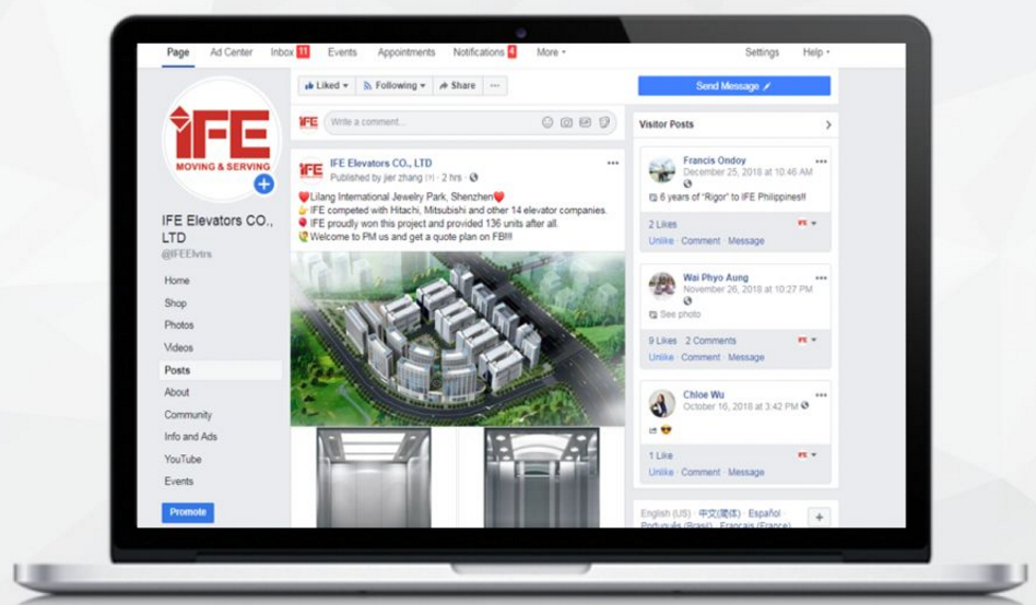4.為快意電梯員工提供Facebook培訓(xùn),企業(yè)內(nèi)部員工學(xué)會(huì)操作,以確保對(duì)詢盤回復(fù)及時(shí)。